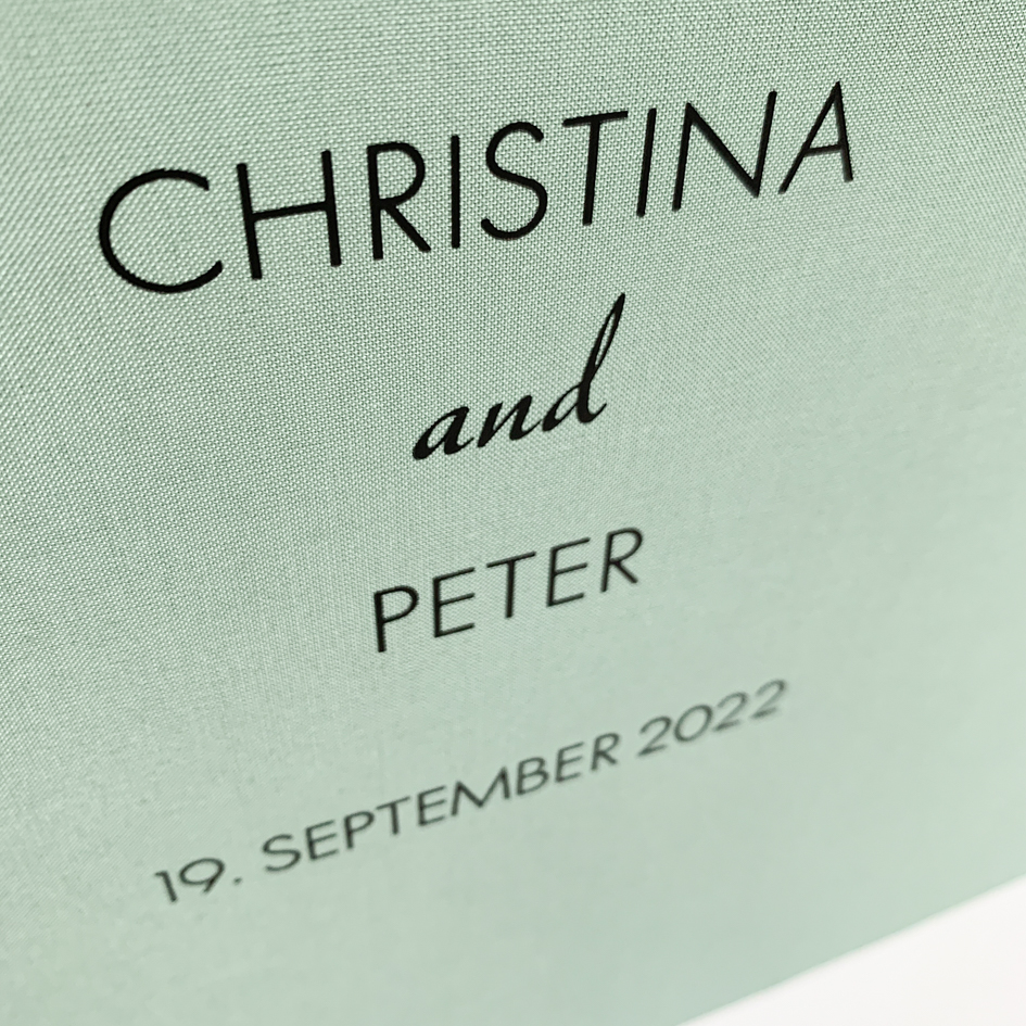 Ein Hochzeitsalbum, das Eure Erinnerungen für immer bewahrt – elegant, hochwertig und einzigartig. Dieses schöne Fotoalbum im leicht glänzenden Mintton ist nicht nur ein stilvoller Begleiter, sondern auch ein Symbol für die besonderen Momente Eures Lebens. Die Personalisierung macht den Unterschied: Mit einer heißen Prägung wird Euer Name fühlbar in das Album eingebracht, ein Detail, das es unverwechselbar macht.