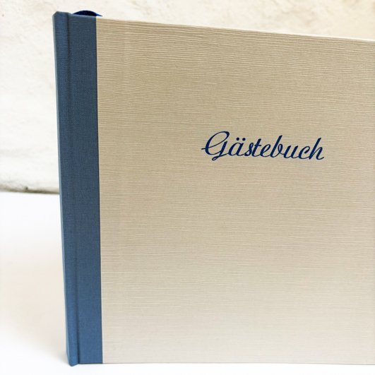 handgebundenes Gästebuch in Taubenblau und Bone White
