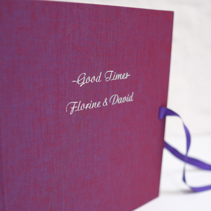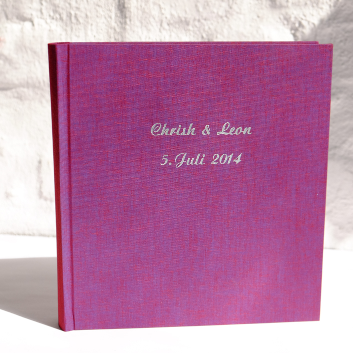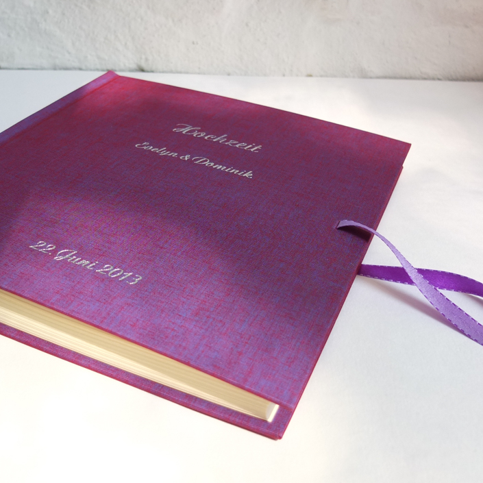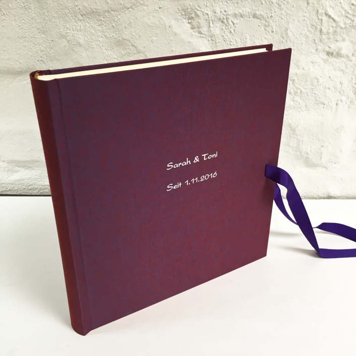 handgebundenes Hochzeitsfotoalbum in schimmender Traube