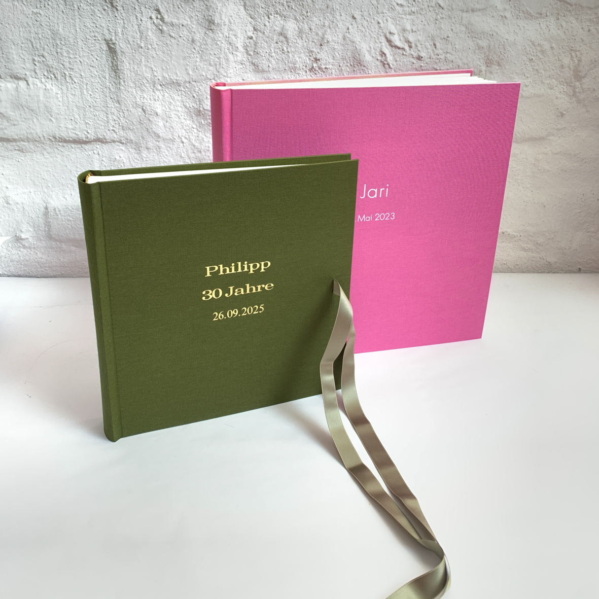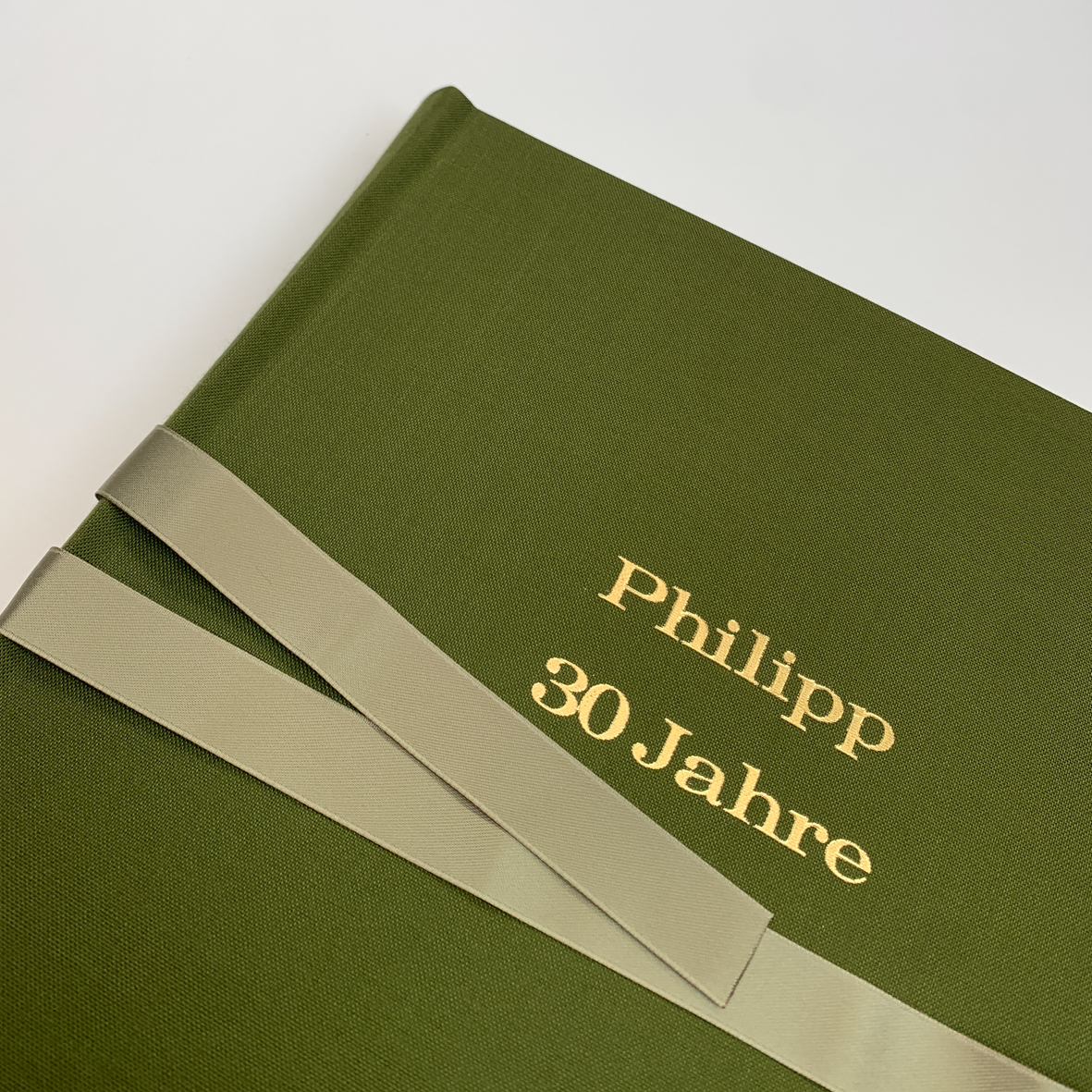 Geburtstagsfotoalbum in Olive mit gold Prägung