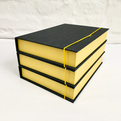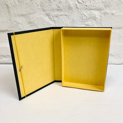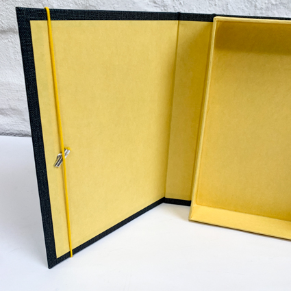 Box in A5 in Gelb und Pfeffergrau
